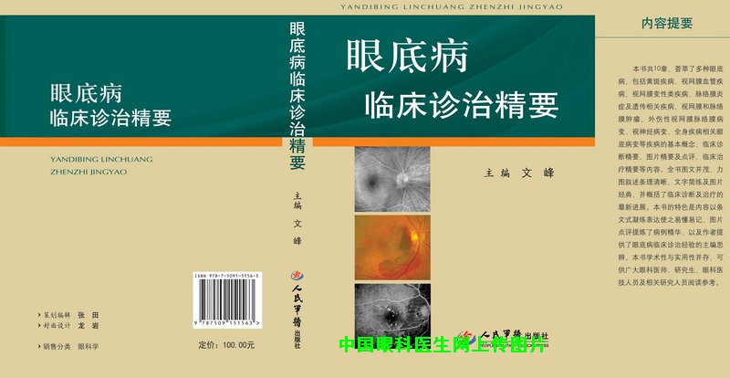 由中山大学中山眼科中心文峰教授主编的《眼底病临床诊治精要》已于2011年11月由人民军医出版社正式出版。本书共10章,包括黄斑疾病、视网膜血管疾病、视网膜变性类疾病、脉络膜炎症及遗传相关疾病、视网膜和脉络膜肿瘤、外伤性视网膜脉络膜病变、视神经病变、全身疾病相关眼底病变等疾病的基本概念、临床诊断精要、图片精要及点评、临床治疗精要等内容。本书的特色是内容以条文式写作方式表达使读者易懂易记,图片点评提炼了病例精华,以及编者提供了眼底病临床诊治经验的主编思辨,并概括了临床诊断及治疗的最新进展。本书可供广大眼科医师、研究生、眼科医技人员及相关研究人员阅读参考。本书为四色、铜版纸印刷,354页,定价100元。为方便读者购买,可与此书责任编辑联系;联系人:张田,联系电话:13683347795; 010-51927300-8225