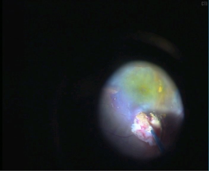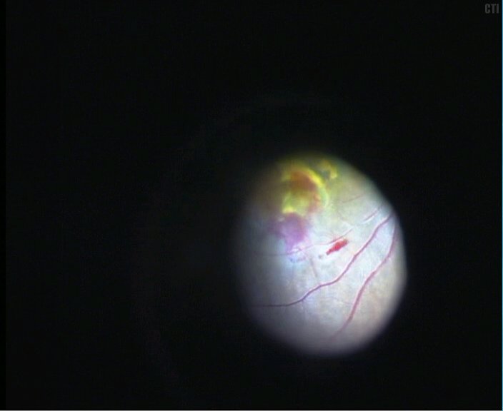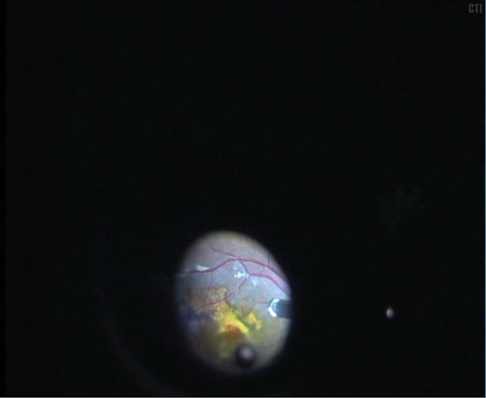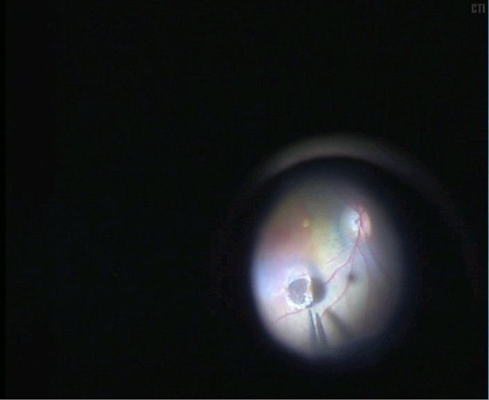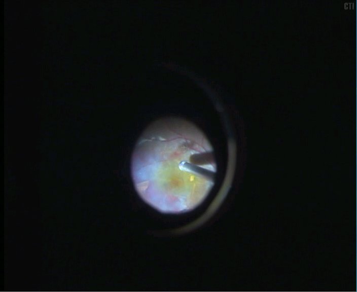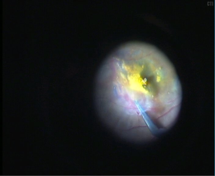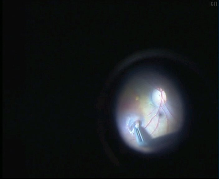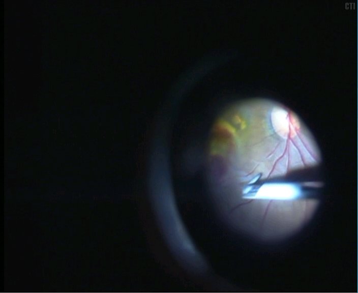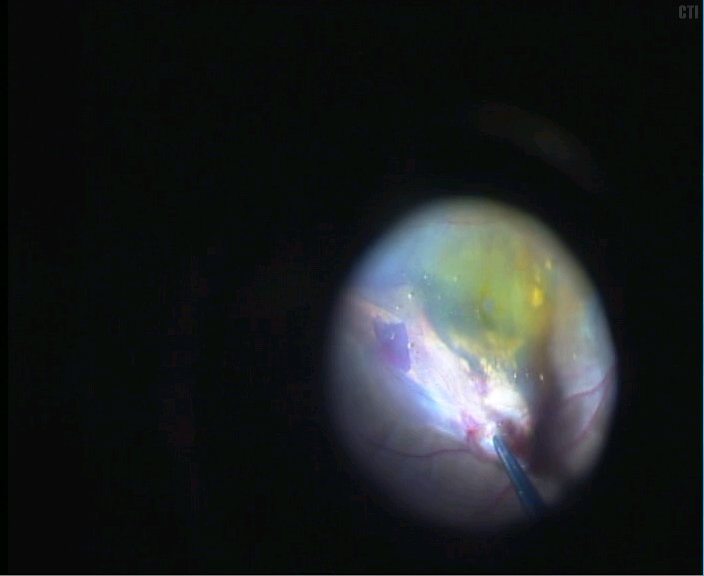 3、局部注水视网膜脱离后取出黄斑下机化的新生血管膜