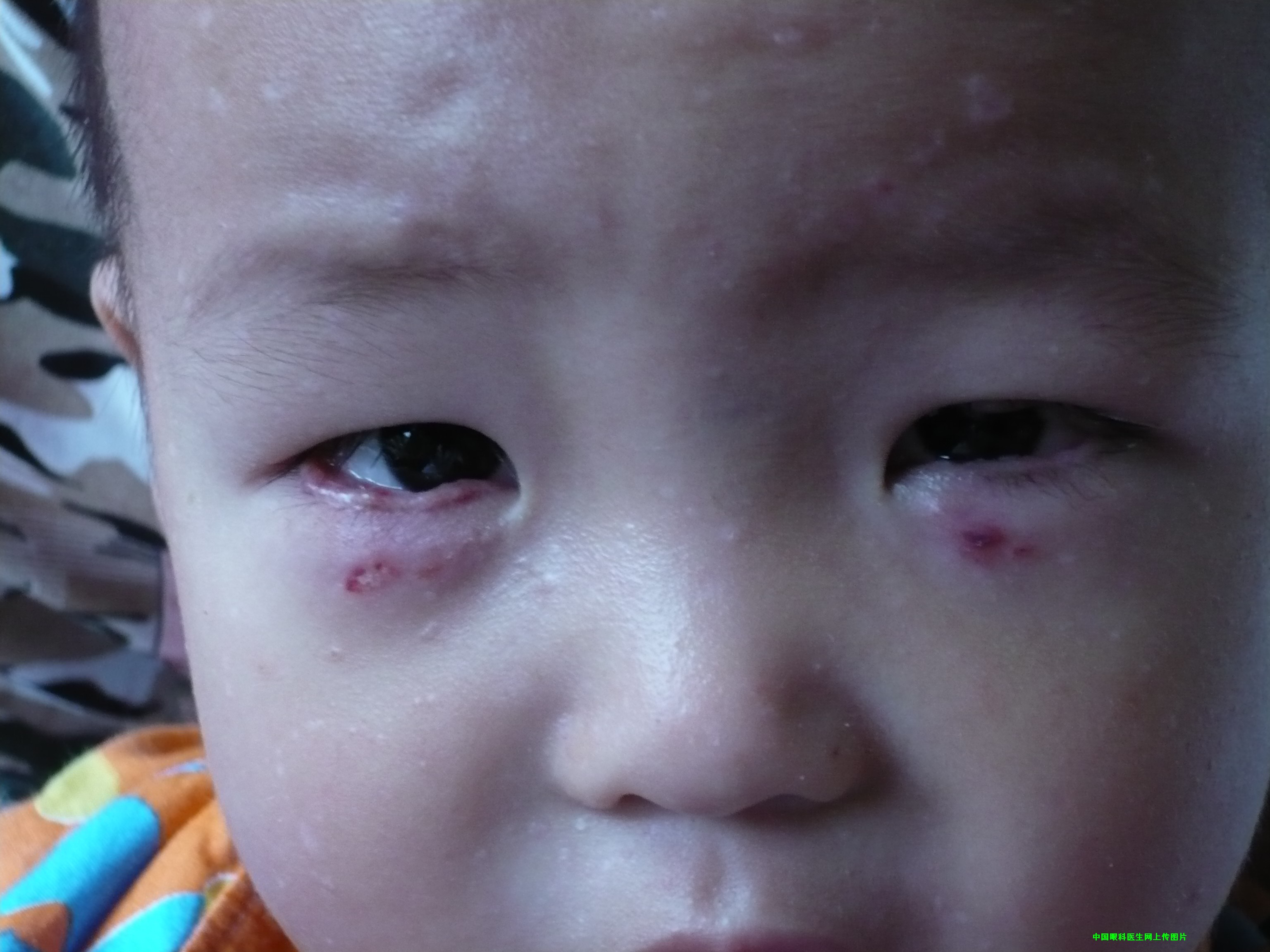小儿睑缘溃疡,伴有全身皮肤粘膜病变