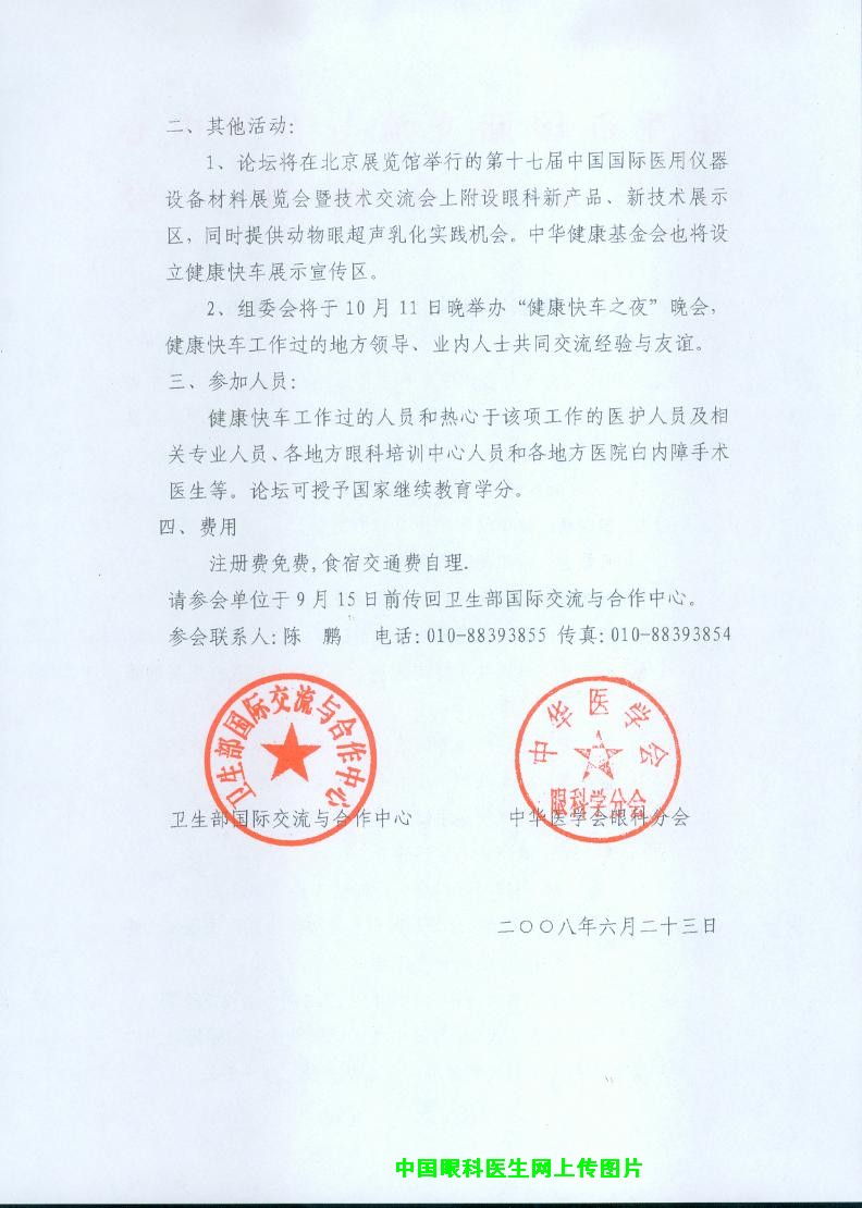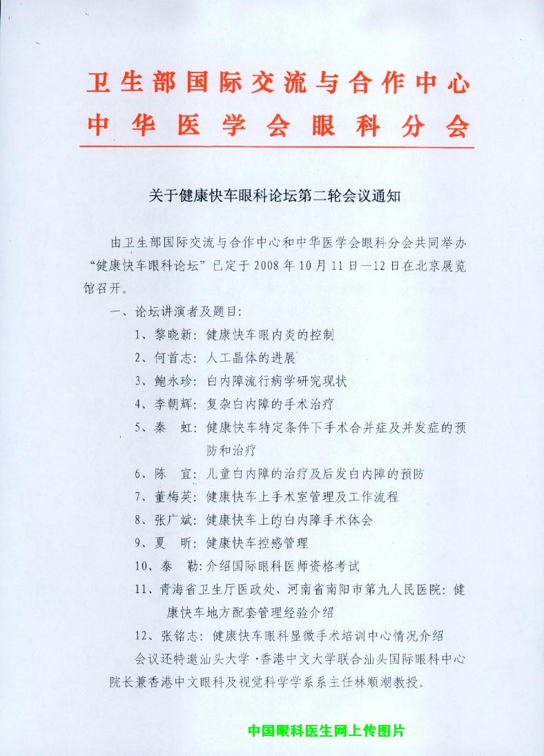 关于健康快车眼科论坛第二轮会议通知