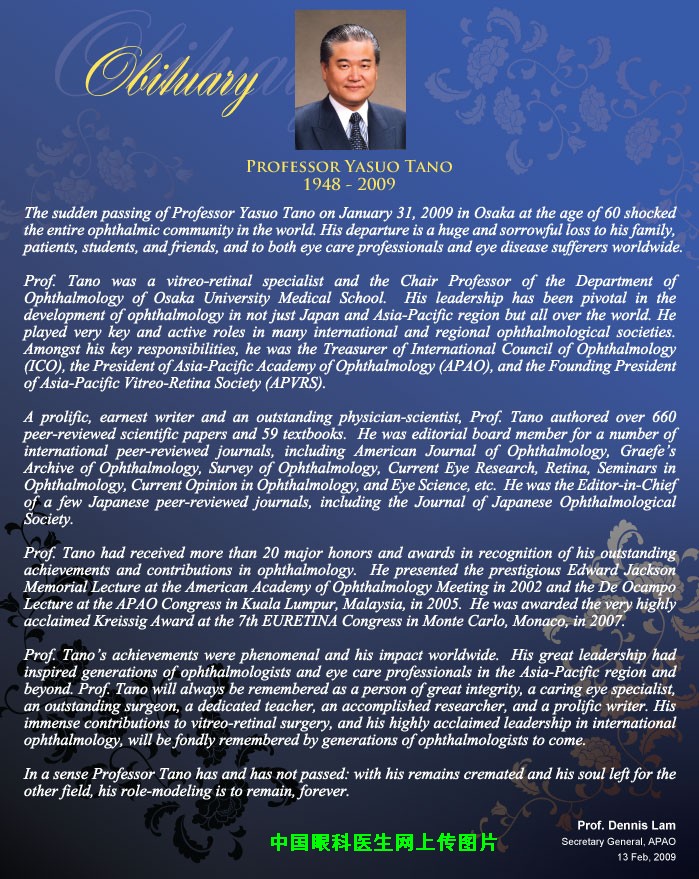 纪念著名日本眼科学家Tano教授