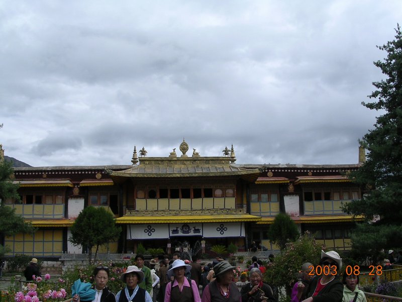 今天是樊大夫妇产科的同事带我们去罗布林卡。罗布林卡意为宝贝园林,面积三十六万平方米,是历代达赖喇嘛的夏宫。全部园林共分为两大部分:东面是罗布林卡,西部是金色林卡。建筑主要是由三座宫殿(格桑颇章、金色颇章和达丹明久颇章)所组成,园林内有苍松、翠柏等树木、花卉,并饲养着小熊猫等珍贵动物。 打车不到10分钟我们就到了罗布林卡公园,因为是雪顿节,门票从3元暴涨到60元。罗布林卡是西藏唯一饲养动物的公园,曾经是达赖的夏宫,也是达赖密谋叛乱独立的地方。因为是雪顿节,公园内很多藏族同胞在"过林卡"(相当于我们的野餐聚会),白宫(高级喇嘛休息的地方)外也有藏戏表演,服装和形式都比较特别,戴着面具就象日本的歌剧。参观了达赖喇嘛的夏宫(格桑颇章),是一座二层小楼,是西藏和平解放后修的。布置还是传统的西藏风格,宗教气氛很浓,还有达赖喇嘛讲经的宝座,旁边是很多宗教故事的唐卡(壁画)。很多人都在五体投地地顶礼膜拜。同行的八个人,除了我之外,都用西藏传统的五体投地的方式膜拜了一下。 罗布林卡应该说是西藏的皇家园林,但是比起北京的皇家园林就差远了,毕竟只是地方统治者的园林。