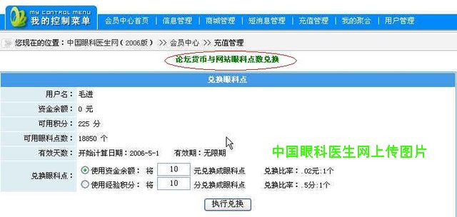 论坛金币和货币都可以登陆网站在会员中心http://www.oculist.net/User/Index.asp 中“充值管理”选择“兑换眼科点”,然后将金币或者货币转换为网站通用的眼科点数。