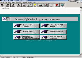 英文的眼科学电子版教材,图文并茂。可以检索,做bookmark,读后感笔记和重要句子的色彩标记。 是掌握眼科英文语法和词汇的重要学习材料,平时也可以作为眼科参考书查阅(检索很方便)。 该光盘共收集了675个章节、1000页文字信息、9500个高分辨图象资料,是当今世界最完善的眼科参考文献,从遗传学、生理、解剖到眼底病及各种眼科手术,都有最详细、全面、权威的介绍。(内容全面,使用方便,唯一美中不足的就是对您的英语水平要求高 !!!) 更多详细介绍 http://www.37c.com.cn/service/multimedia/xmlPages/193.xml?tmp=.7637293