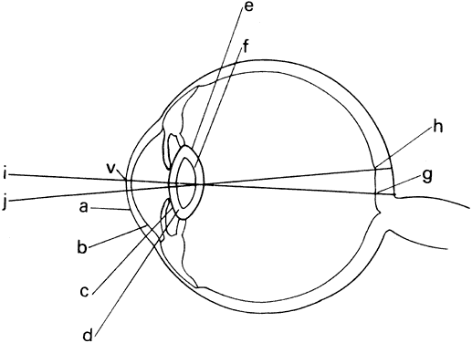retina. Unlike the components of most optical systems, typified in Figure 2, the cornea and lens are not centered on a common axis, nor are they spherically