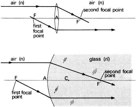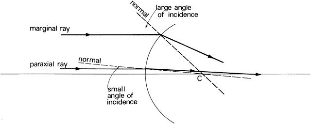 axis and strike the surfaces with very small angles of incidence (Fig. 3). A bundle of paraxial rays converges to a single point focus. As the