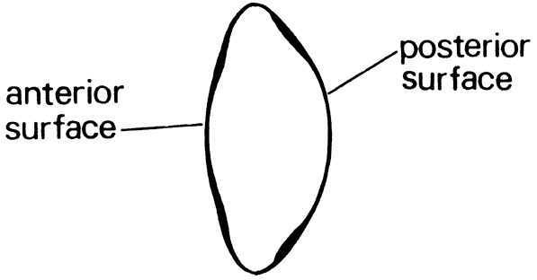 Briefly, the corneal portion, including the tear layer, separates air from aqueous humor, and the lens portion separates aqueous from vitreous humor. Rays entering the eye are refracted first and by the greatest amount at the first surface of the cornea because of the large difference in index of refraction at the air-to-cornea interface. The second surface of the cornea has negative power; nevertheless, the cornea contributes over 70% of the approximately 64 diopters (D) of refractive power of the unaccommodated eye. The crystalline lens supplies the remaining refractive power. During accommodation, additional power is supplied by the lens, which assumes a rounder form. |
