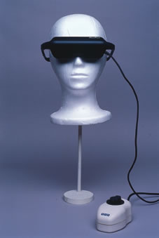 Revolutionary camera designs enable people with low vision to perform daily tasks more effectively. To illustrate, there is now a compact camera that turns a full 180 degrees to magnify images in any position up to 30× with autofocus capability of distant, intermediate, and near ranges. The system can be made portable with a pair of lightweight glasses that display the magnified image within the battery-operated system. Another device, a portable handheld digital magnifier, enables the use of a similar pair of lightweight glasses with built-in monitor for reading text (Fig. 6) (Enhanced Vision Systems, Huntington Beach, CA).