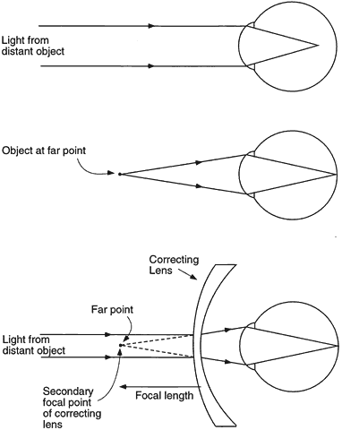 | As illustrated in Figures 1 and 2, the lens that corrects a refractive error images parallel light rays