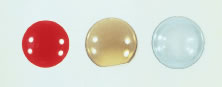 The use of occluder lenses in children for the treatment of amblyopia has been somewhat controversial. Conservatives believe that the risks of a contact lens outweigh their benefits. Concerns about infections are the main focus of this controversy. Another concern is hypoxia and the complications associated with extended wear because these very young patients do spend a significant percentage of their days sleeping. They are not often used but, whenever used, they are usually quite successful. Contact lenses are a very successful tool in the treatment of diplopia, both monocular and binocular. Strabismus, neurologic disorders, and trauma are the most common causes of diplopia. In most cases the diplopia is binocular, although, in trauma cases monocular diplopia associated with iris anomalies is not uncommon. Patients with diplopia are often quite debilitated with the symptoms, and the relief offered by the lenses is usually quite welcome. Depending on the anatomy of the eye, these lenses can be either an occluder (black-out) lens or a simple black pupil lens. The traditional black-out lens is a soft lens that is painted black and totally opaque on its entire surface. Although successful in providing coverage of the visual axis, thus relieving the symptoms, it is not cosmetically appealing, especially in patients with light colored eyes. The most commonly used type of lens is a clear soft contact lens with a black pupil in the center. The pupillary diameter will vary depending on the patient's pupil diameter and positioning of the eye. Careful attention must be paid to the position of the eye to avoid allowing light and vision through the periphery of the painted pupil. In many cases it is necessary to enhance the occluder effect of the lens, because patients can still see through the lens, and thus symptoms are not eliminated. A technique that can be used with great success is the use of a contact lens with a power that is completely different than the patient's refractive error. This lens (power) will provide some significant blurring of the vision that, together with the blocking effect of the black pupil, will in fact obstruct the vision. Although some patients report some vision out of the eye with the lens, most are able to learn to suppress the image in the covered eye enough to obtain symptom relief. In patients with monocular diplopia, the symptoms are caused by iris abnormalities that in effect create two different visual axis. In most cases the iris abnormalities are traumatic, although they can be iatrogenic (as in patients with peripheral iridectomies that are not covered by the eyelids). Although rare, monocular “multiplopia” can occur. This is usually seen in trauma patients or in patients that have undergone multiple intraocular surgeries and have several iridectomies that are not covered by the eyelids. In patients with monocular diplopia, the type of occluder lens needed is usually different, because the goal of therapy in these patients is to create a single pupil. These patients typically require an opaque iris-painted lens that will cover the entire iris and creates a single, central, clear pupil. These types of lenses are usually more complex to fit but are usually quite successful. COLOR DEFICIENCIES Approximately 8% to 10% of males and 0.5% of females have some impairment in color vision ranging from a mild deficiency to an almost complete impairment. The defect is most commonly in the red-green range. Although yellow-blue deficiencies are seen, they are much less common. The X-Chrom lens can be used successfully to treat these patients (Fig. 12). The X-Chrom lens transmits light in the red zone from 590 to 700 nm (spectrum of white light is 380 to 760 nm), thus improving color discrimination in patients with partial impairment in the red-green range. The lens is bright red, usually rigid, and fitted to the nondominant eye. The other eye either remains uncovered or is fitted with a conventional lens for the correction of any ametropias that the patient might have (the X-Chrom lens can be obtained in any power, so that it can also correct any refractive error). The uncovered eye will perceive a red-green object as usual, but the eye with the red lens will perceive the red wavelengths of light and will absorb the green wavelengths. The brain now receives two different intensities. By a rapid self-learning process, the patient can identify both colors properly.