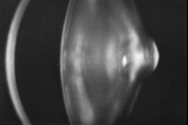 | Patients with Lowe's or Alport's syndrome are known to have cataracts. Ocular manifestations (most commonly anterior lenticonus) occur in approximately 15% of patients with Alport's syndrome.94 Often there is a localized posterior polar opacity associated with the conic area. The opacity or sometimes the severe irregular astigmatism induced by the lenticonus can cause disabling visual symptoms, which often necessitate cataract extraction. |