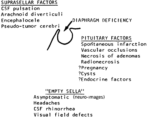 combination of incomplete diaphragma sellae and CSF. Bergland et al218 reaffirmed previous observations that diaphragmal openings are indeed