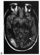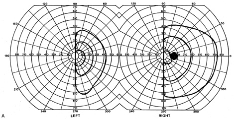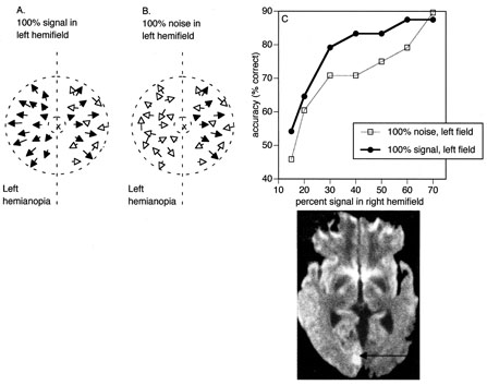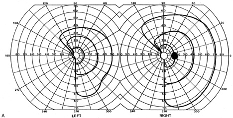 Posttraumatic transient cerebral blindness is a syndrome that affects children and young adults.73,104,105 It occurs in about 1% of closed head injuries.72,86,106 The impact is often in the parieto-occipital region.72,73,105,107Headache, confusion, anxiety, nausea, and vomiting are frequent,105 as is loss of consciousness at the time of injury in young children and adults.86 Blindness may occur immediately or after a few minutes,73,86,105,107 and in adolescents sometimes after a few hours.86 Vision recovers within 24 hours,105,107 although the course in adults is more variable, with occasional residual deficits.86 CT of the head often is normal,101,105,107 but EEG shows bilateral occipital slowing.73 Protracted recovery, especially in children, may indicate cerebral contusions107 or occipital lobe infarction from tentorial herniation.108 There can be a personal or family history of seizures and migraine.86 The course of cerebral blindness is variable. Blindness can last hours, days, or weeks; or evolve into a hemianopia or other field defect. The patient may recover fully, or the deficit may become permanent.71,76,102 If there is recovery, it usually occurs within 5 months.71 Recovery of useful vision is more likely in children than adults.102 The prognosis is better with hypotension during cardiac surgery than with other causes.71 The prognosis with hypoxia is worst for preterm infants, who tend to have periventricular leukomalacia rather than parasagittal watershed infarctions. Optic radiation damage on their CT or MRI is a poor sign.109 Normal MRI in most other settings is a good prognostic sign71,109 and significant recovery can occur if hypoxic damage is limited to the visual cortex.109 Spike-and-wave discharges on EEG are associated with multiple handicaps and poor visual recovery.71 Transient cerebral blindness occurs in about 1% to 15% of patients with pre-eclampsia or eclampsia.97,98,110 Fluctuations in blood pressure with peripartum blood loss may contribute.111 The pathogenesis is analogous to that of hypertensive encephalopathy, with development of petechial hemorrhages and focal edema from impaired cerebral vascular autoregulation, and ischemia from vasospasm.98,112 CT scans may be normal or show bi-occipital lucencies.98,113 MRI is more sensitive, showing T2 hyperintensities and T1 hypointensities similar to those in hypertensive encephalopathy.112,114 Management is that of eclampsia, with magnesium sulfate, fluid restriction, and blood pressure control. The prognosis is good, with virtually all women regaining vision within a few hours to a week, rarely as long as 3 weeks.98 The differential diagnosis of eclamptic visual loss includes cerebral venous thrombosis115 and systemic hypoperfusion resulting from pulmonary emboli.116 Antiphospholipid antibodies may be associated with infarction or venous thrombosis.117 Eclampsia also can affect the eye, causing retinopathy with retinal detachment, edema, and vascular thrombosis118 or, more rarely, anterior ischemic optic neuropathy.119 Pituitary apoplexy can present with severe headache and visual loss and is a medical emergency. Anton's Syndrome About 10% of patients with cerebral blindness are not aware of their deficit and insist that they can see.57,60 This syndrome may be considered a form of anosognosia (denial of acquired impairment) that has been attributed to right hemispheric dysfunction or disconnections between the thalamus and right parietal lobe.120 Denial of blindness can also occur in patients with ocular or optic nerve disease when there is concurrent dementia or a confusional state. In contrast, altered mental status is not a necessary accompaniment of denial of blindness with lesions of the visual cortex. Thus, Anton's syndrome might be more specifically defined as denial of blindness in the absence of dementia or delirium. However, even this presentation is not specific to lesions of visual cortex, as it can result from unusual combinations of bilateral optic neuropathy and bilateral frontal lobe disease.121 Abnormalities in the Remaining Visual Field Some patients with hemifield visual defects complain of difficulties with their remaining vision, such as visual fatigue or blurring, especially in tasks with high attentional demands such as reading, finding a face in a crowd, or driving a motor vehicle. There is evidence that unilateral lesions produce not only contralateral scotomata but also deficits in both the remaining ipsilateral and contralateral visual fields. There are spatial and temporal contrast sensitivity deficits in the supposedly normal ipsilateral hemifields of patients with homonymous hemianopia.122 There is reduced sensitivity and increased response times to signals in both hemifields and reduction in the “useful field of view.”123 Saccadic response times to visual targets in the ipsilateral hemifield are also reduced.124 The origins of these subtle bilateral effects of unilateral lesions are unclear. One hypothesis is that the inevitably associated white matter damage disrupts visual connections, including projections from V1 to other visual areas, callosal connections between the same or different visual areas in the two hemispheres, and feedback projections from a higher visual area to a lower one. A lesion in one area thus can affect the functioning of another, more distant area (diaschisis). Disrupted connections can impair the synthesis of information from other vision areas and both hemispheres, producing “long-range” disturbances in both hemifields, outside the limited contralateral scotoma. Damage to extrastriate regions may have similar bilateral long-range effects, as shown in monkeys with lesions of area V4, for example. Thus associated extrastriate damage may contribute to impaired processing efficiency in the ipsilateral field of patients with hemianopia.123 Standard kinetic and automated static perimetry are not designed to detect such deficits. These tests ignore respon