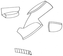 The Hooper Visual Organization Test313 probes mental imagery by requiring a patient to identify 30 different items (e.g., shoe, fish) from cut-up, rearranged line drawings of the items (Fig. 25). Mooney's Closure Faces Test314,315 provides information similar to the Hooper test by asking patients to judge age and sex in 44 incomplete cartoons of faces. Performance on this test is also dependent on memory.