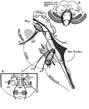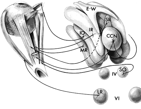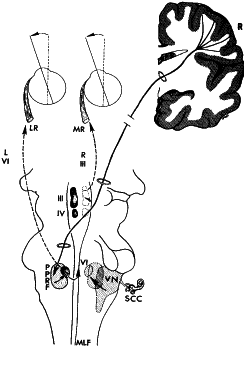 | The supranuclear control of eye movements is discussed in detail in Chapters 9 and 10. However, for purposes of review it should be recalled