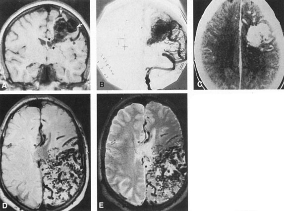 malformations, and AVMs.62 The most common, the true AVM, is a tortuous mass of both arteries and