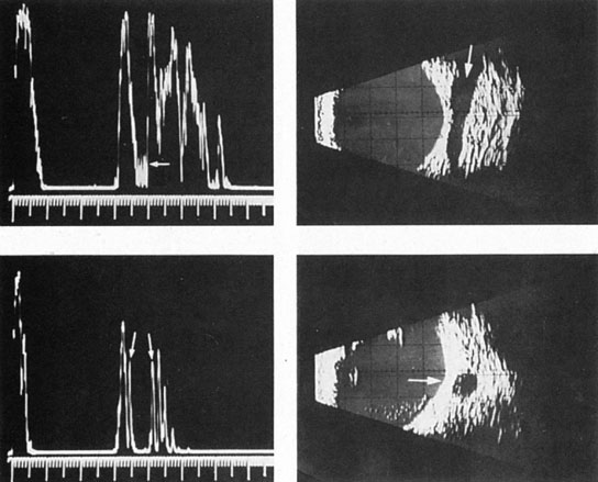 Venous flow from the face (frontal and angular veins) enters the superior ophthalmic vein at the superior-medial orbital rim, thence to the cavernous sinus via the superior orbital fissure. The cavernous complex drains posteriorly via superior and inferior petrosal dural sinuses, and the basal clival plexus, to the internal jugular system. Arteriovenous shunts involving the cavernous sinuses are rarely congenital. Approximately 25% of arteriovenous fistulas occur spontaneously, especially in middle age to elderly women, and atherosclerosis may be considered the substrate for such dural arterial leaks. Cerebral trauma accounts for some 75% of carotid–cavernous fistulas, usually in the younger age group, producing the classic clinical picture of pulsating exophthalmos. Other traumatic causes include penetrating orbitocranial wounds, including knife injuries. Iatrogenic fistulas are reported following transsphenoidal pituitary surgery,52 after injury to the internal carotid artery during endarterectomy,98 after ethmoidal sinus surgery,99 or after percutaneous gasserian and retro-gasserian procedures.100 Connective tissue disorders such as Ehlers-Danlos syndromes have been associated with spontaneous carotid–cavernous fistula,101 and fistulas are documented during otherwise uncomplicated pregnancy.102 The classification of carotid–cavernous fistulas is problematic but these lesions may be sorted according to several criteria: pathogenetically into spontaneous or traumatic; angiographically into direct (cavernous carotid) or dural (external carotid); and hemodynamically into high-flow and low-flow, although no objective criteria exist for this distinction except severity of clinical findings. Barrow and co-workers103 suggest that all carotid–cavernous fistulas may be categorized into one of four angiographic types: type A, direct shunts between the internal carotid artery and the cavernous sinus, including most traumatic carotid–cavernous fistulas that are characterized by high venous pressure and flow; type B, dural shunts between meningeal branches of the internal carotid artery and cavernous sinus; type C, dural shunts between meningeal branches of the external carotid artery and cavernous sinus; and type D, dural shunts between meningeal branches of both internal and external carotid arteries and cavernous sinus. Carotid–cavernous fistulas are initiated by traumatic or spontaneous rents in the walls of the intracavernous internal carotid artery or its branches, with short-circuiting of arterial blood into the venous complex of the cavernous sinuses. The two cavernous sinuses are connected across the sphenoid, including the sellar floor and clivus, so that any signs and symptoms may be bilateral. The major anterior outflow structures of the cavernous sinus are the orbital veins, which become engorged, with secondary congestion of orbital soft tissues (Figs. 13 and 14). With raised venous pressure and lowered arterial perfusion, stagnant hypoxic changes also contribute to soft tissue swelling, some degree of ophthalmoplegia, and anterior segment ischemia. In the fully evolved state, this syndrome includes lid swelling and orbital pain, varying degrees of pulsating exophthalmos, subjective or objective ocular or cephalic bruit, diplopia, engorged and chemotic conjunctiva, and raised intraocular tension. The fundus may show dilated veins without spontaneous pulsations, disc edema, retinal hemorrhages, venous stasis retinopathy or vein occlusions and, rarely, choroidal effusions.104–106 The ophthalmoplegia with carotid–cavernous fistulas is believed to be caused by enlarged muscles or to damage of cranial nerves within the cavernous or petrosal sinus.107 Enlarged extraocular muscles are demonstrable by ultrasongraphy in this form of venous stasis orbitopathy, also utrasonography uncovers reversal of flow in the superion ophthalmic vein.107 Sudden pain with increased swelling, followed by improvement, suggests thrombosis of the superior ophthalmic vein, an event that may be documented by orbital MRI108 or by standardized orbital echography. In addition, proptosis that improves on one side, only to increase on the opposite side, produces a picture of signs and symptoms more marked contralateral to the fistula.109 Anterior segment hypoxia may include protein flare and cells in aqueous, corneal edema, glaucoma, iris rubeosis, rapidly progressive cataract, and venous statis retinopathy, that is, an hypoxic eyeball syndrome. Lesser degrees of congestion with mild conjunctival arterialization (Fig. 15), ocular hypertension, and small abduction defect all hint at the slower flow, lower pressure situation that accrues usually spontaneously with dural circulation fistulas.104,106 Bruit is less likely. Although the clinical constellation previously described implies the great likelihood of carotid–cavernous fistula, definitive diagnosis depends on complete angiographic evaluation with selective opacification of bilateral internal and external carotid arteries, and vertebral circulation. Prominence of the superior ophthalmic vein is frequently detected on CT scan and MRI, and less frequently extraocular muscle enlargement and lateral bulging of the cavernous sinus are seen by MRI.110 Standardized orbital echography regularly confirms enlargement of the superior ophthalmic vein and increased flow (Fig. 16),107,111 in both direct and indirect fistulas. Therapy for carotid–cavernous fistula is directed toward relieving ocular symptoms, especially where visual loss is threatened, with the goal being thrombosis of the fistula with normalization of orbital hemodynamics. Various arterial ligatures, trapping procedures, controlled embolizations, and even direct intracranial attacks have been advocated, but the current trend indicates the great advance represented by intravascular closure using detachable balloon microcatheterization techniques (Fig. 17).106 Complications of these techniques in