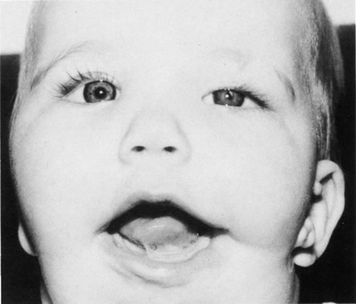 of the hands and feet (Fig. 9). Ptosis, an antimongoloid slant to the intrapalpebral fissure, and