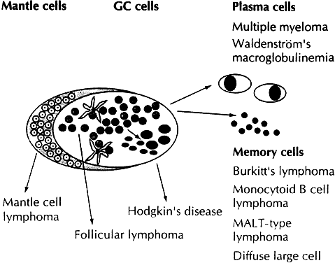 neoplasms. Most systemic lymphomas are of the nonHodgkin's B-cell
