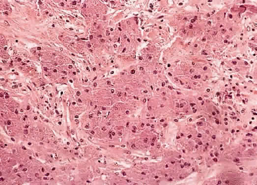in the literature. Patients most commonly present with proptosis and decreased visual acuity. These tumors often are well vascularized and can be mistaken clinically for a vascular tumor, such as a hemangioma. They also may have a propensity to involve extraocular muscles.11 Recurrence rates of orbital paragangliomas are reportedly high, with 11 of 19 cases recurring in one study, and 7 of these cases resulting in death from the tumor.12 Histopathologically, they frequently can be mistaken as alveolar soft-part sarcoma if histologic preparation is poor. Goldstein and coworkers13 determined that 16 of an initial 29 reported cases of paraganglioma actually were alveolar soft-part sarcomas. Therefore, previous reports of recurrence rates may not represent accurately the prognosis after resection of this rare tumor. The management of orbital paragangliomas is surgical. Diagnosis before surgery is difficult because of the rarity of the neoplasm and the vascular pattern of the tumor, demonstrable by ancillary studies. Exenteration may be a surgical option after recurrence, but it usually is not the first modality of treatment. Concerns for vision preservation usually prompt conservative management initially. The histologic features of paragangliomas are distinctive. The cells usually are arranged in groups separated by fibrous septa. The histologic pattern is classically described as “Zellballen” (cell balls) because the cells usually are in spherical aggregates, separated by delicate vessels. Sustentacular cells, which are supportive cells with darkly basophilic nuclei and minimal cytoplasm, are present within paragangliomas and can be helpful in the histopathologic differential diagnosis. Electron microscopy of these tumors reveals large number of dense core neurosecretory granules that contain biogenic amines, indicative of the neural histogenesis of the tumor. Immunohistochemical studies also can be useful when the hematoxylin and eosin (H&E) stain does not demonstrate the classic histologic pattern associated with paraganglioma. Immunohistochemically, paragangliomas react with neural markers and markers for peptide hormones, including synaptophysin, neuron-specific enolase, chromogranin, neurofilaments, serotonin, somatostatin, and other peptide hormones.14 |
