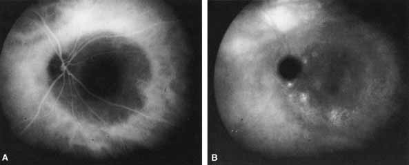 | In general, the most promising clinical application of ICGA is as an adjunct to FA in the diagnosis and management of exudative age-related macular degeneration (AMD).2–4,11,12,13 ICGA may also be of value in evaluating other choroidal-based pathologic processes, such as choroidal tumors, central serous chorioretinopathy, and choroidal inflammatory or degenerative diseases.9 ICGA has been used in various ways to study choroidal vascular flow, and the technique, in general, may be helpful in elucidating the pathophysiology of diseases involving the choroidal vasculature.8,37,39–43 |