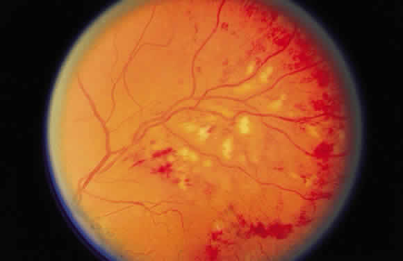 shape of the hemorrhage. Fresh hemorrhage on the retinal surface appears bright red, whereas fresh hemorrhage