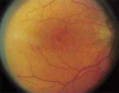 The two forms, complete and incomplete rod monochromatism,66–68 probably reflect the total number of abnormal and missing cones. The presence of both forms of rod monochromatism in members of several affected families suggests that the complete and incomplete forms of rod monochromatism may represent different phenotypic expressions of the same genotype. Krill and Deutman66 have combined progressive cone dystrophy and progressive cone-rod dystrophy into one entity and refer to it as dominant macular degeneration. However, we shall refer to these dystrophies as progressive cone-rod dystrophies. ROD MONOCHROMATISM: COMPLETE FORM Synonyms: Typical monochromatism, complete achromatopsia Introduction Complete rod monochromatism is a rare form of congenital color defect. It is characterized by the presence of a marked generalized cone abnormality or complete absence of cones associated with a low level of visual acuity.64,65,69,70 The inheritance pattern is autosomal recessive. The mutations associated with rod monochromatism have not yet been completely identified. Arbour and colleagues72 have demonstrated linkiage of the disorder in an Iranian-Jewish pedigree to a centromeric region of chromosome 2. Rod monochromacy has also been reported with mutations in chromosome 14.73 Histopathologic study of donor eyes from patients with rod monochromatic has demonstrated the presence of cone-like structures within the retina.73 There is some controversy as to the nature and distribution of these cones. Two separate reports, one by Larsen74 and a second by Falls and co-workers75 found a normal total number of cones but with abnormal shapes. Harrison and colleagues76 reported abnormally shaped cones, reduced in total number throughout the retina. Clinical Findings The dystrophy is first detected in early youth as an absence of color vision with associated nystagmus, photophobia, and hemeralopia.74 Both the photophobia and the nystagmus tend to disappear as the patient becomes older, especially after 15 years of age. The patients often present with a high degree of hypermetropic refractive error. The clinical findings include a pronounced abnormality of color perception found on all color tests and a visual acuity in the 20/200 range. The vision is sometimes better for near distances and in dim illumination and worse in bright illumination. Visual fields may be normal or slightly constricted, particularly to colored targets, and a central scotoma can sometimes be demonstrated as the patient grows older. Nystagmus may make testing difficult. The nystagmus is pendular in youth, may decrease at near distances, and tends to decrease or disappear with time. The pupils respond slowly to light and paradoxic responses have been recorded during dark adaptation.76 Fundus changes are absent or minimal and, when present, are limited to the fovea. When present, these changes may include an abnormality or absence of the foveal reflex and, occasionally, a discrete, fine, granular disturbance of the retinal pigment epithelium within the central macula. The fovea has also been described as being hypoplastic. No medical treatment is available, although tinted glasses help to decrease photophobia in bright illumination and may aid in slightly improving the visual acuity. Red-tinted contact lenses have also been tried with some success. Though central acuity remains diminished, the dystrophy is not progressive. Ancillary Tests Fluorescein angiography may show mild retinal pigment epithelium (RPE) transmission defects when a disturbance of the retinal pigment epithelium is present. Rod monochromats fail to recognize any plates on the common plate tests such as the Ishihara and Hardy-Rand-Ritller (HRR) tests. Rarely, residual cone function in rod monochromats can be demonstrated. A Stiles Crawford effect may be demonstrated and the dark adaptation curve maybe biphasic. Although Sharpe and Nordby reported residual cone function with ERG testing, these patients may have occult cases of incomplete achromatopsia or even progressive cone rode dystrophy. Electrophysiologic Tests The diagnosis is based on the findings of a congenital complete color defect with a nonprogressive subnormal visual acuity in the 20/200 range, normal scotopic ERG, absent or markedly subnormal photopic ERG, and a normal EOG.66–68 ROD MONOCHROMATISM: INCOMPLETE FORM Synonym: Incomplete achromatopsia Introduction The clinical findings in incomplete achromatopsia are the same as those in the complete form, but they are usually less severe.64,66,69,70 Patients often have some residual color discrimination. The inheritance pattern is autosomal recessive. Photophobia and nystagmus may be absent, and visual acuity is less severely impaired than in individuals with the complete form. Unlike complete rod monochromats, individuals with the incomplete form have residual cone function mediated by photosensitive pigments other than rhodopsin, which provide the basis for some color perception.67,68 Clinical Findings The diagnosis is based on the clinical findings of a congenital incomplete color defect with a nonprogressive subnormal visual acuity in the 20/60 to 20/200 range.66–68 Fundus changes are absent or minimal and, when present, are similar to those found in the complete form of rod monochromatism. Ancillary Tests Patients with incomplete rod chromatism demonstrate normal scotopic ERG response, nonrecordable or subnormal photopic ERG response, and a normal EOG. BLUE CONE MONOCHROMATISM Synonym: Atypical monochromatism Introduction Blue cone monochromatism, which demonstrates an X-linked recessive pattern of inheritance, is similar to the autosomal recessive form of rod monochromatism in its functional defects and clinical characteristics, although the two forms may be differentiated on the basis of spectral sensitivity and color matching. Female carriers of blue cone monochromatism may have an abnormal macular appearance and demonstrate abnormal photopic a