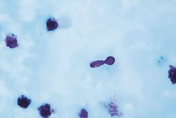 | Cryptococcosis is caused by Cryptococcus neoformans, a round to oval yeastlike fungus. The genus Cryptococcus contains several species, but only C. neoformans is reported with human disease. It is not endemic to any particular area