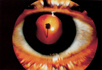 or arteriovenous aneurysms, although they are not true aneurysms.14,33 When arteriovenous communications are large, visual acuity can be severely affected, and the optic nerve tissue can be completely replaced by the anomalous vessels. Vascular sheathing and retinal pigmentary degeneration may occur. Patients with more severe retinal involvement are more likely to have cerebral or periorbital arteriovenous abnormalities, which comprises the Wyburn-Mason syndrome.31 The clinical appearance of these lesions may change over time.34,35 Complications associated with this vascular abnormality include intraretinal hemorrhage, vitreous hemorrhage, aneurysm formation, neovascular glaucoma, macular hole, retinal artery occlusion, and branch or central retinal venous occlusion (see Fig. 6B).36–40 It is hypothesized that retinal arteriovenous communications are associated with localized decreased retinal arterial pressure, increased retinal venous pressure, increased turbulence of blood flow, and decreased perfusion of adjacent retinal tissues to account for these complications.36 IVFA may show rapid dye transit through the arteriovenous communication. There may be adjacent microvascular abnormalities or areas of capillary nonperfusion. Extravascular leakage from these lesions is uncommon. Congenital retinal arteriovenous communications should be distinguished from those acquired secondary to carotid occlusive disease associated with retinal ischemia.41 No successful treatment of these lesions has been reported. Laser photocoagulation may be warranted in some cases with exudative macular involvement or neo-vascular glaucoma.14,37 A racemose or cirsoid retinal arteriovenous communication may represent the ocular manifestation of Wyburn-Mason syndrome, which is one of the phakomatoses.33 This syndrome consists of unilateral retinal arteriovenous communication in conjunction with an ipsilateral arteriovenous malformation of the midbrain.42 The presence of a concomitant systemic arteriovenous communication correlates directly with the grade of retinal arteriovenous communication. Most grade I and II arteriovenous communications appear to represent isolated retinal vascular anomalies.31 Unlike the other phakomatoses, the hallmark ocular lesion of Wyburn-Mason syndrome is not a true hamartoma but is better classified as a hamartia.33 Additional systemic findings in this syndrome include arteriovenous malformations of the bones of the skull, particularly the maxilla and mandible, and, occasionally, facial angiomas.43 Proptosis secondary to an orbital arteriovenous malformation rarely occurs. Wyburn-Mason estimated that 81% of patients with a racemose aneurysm of the retina had an associated intracranial arteriovenous malformation, although other authors believe the actual percentage to be much less.42,44 No hereditary pattern has been identified. |