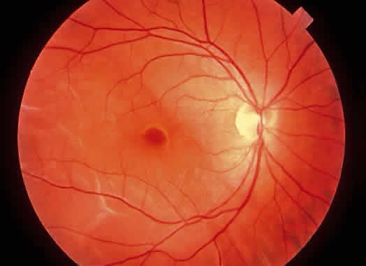 CONGENITAL (JUVENILE) RETINOSCHISIS. The presence of a characteristic spokelike pattern of foveal change alerts the examiner to this condition. In the peripheral retina, schisis tends to develop between the nerve fiber layer and the balance of the retina (Fig. 8). Holes commonly develop in the inner wall of these schisis cavities but are generally inconsequential. In contrast, holes in the outer wall of these cavities are rare but can lead to RRDs.28,85 EHLERS-DANLOS SYNDROME. This autosomal dominant condition is characterized by abnormal collagen throughout the body. These patients are predisposed to both myopia and RRD. GOLDMANN-FAVRE SYNDROME. This is an autosomal recessive condition in which cataract, peripheral and macular retinoschisis, radial lattice degeneration, accelerated vitreous syneresis, and retinitis pigmentosa-like peripheral retina changes are evident. These patients are prone to RRDs, which often prove difficult to repair. MARFAN SYNDROME. As with Ehlers-Danlos, there is an increased risk of myopia and lattice degeneration, leading to a high incidence of RRDs. When ectopia lentis is present, cataract removal is often associated with vitreous loss, which places these patients at an even higher risk for RRD. OTHER ABNORMALITIES. Patients with the so-called morning glory syndrome are predisposed to RRD because liquefied vitreous may pass through defects in the anomalous disc into the subretinal space. Likewise, tears present in choroidal colobomas may also cause RRD.86 |