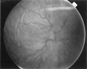 is the underlying cause. Choroidal detachment may accompany hypotony from overfiltration, but more commonly the fundus exhibits chorioretinal folds and disc edema (Fig. 2), with a reduction in visual acuity to the 20/400 range. This was first described by Dellaporta,15 but the term hypotony maculopathy was coined by Gass.16 Presumably, the sclera shrinks from the low intraocular pressure, leaving the choroid wrinkled like an unstretched carpet. Cystoid macular edema may also coexist with hypotony maculopathy.17 Hypotony maculopathy is more common in young myopes after filtering surgery. It is not known with certainty how long hypotony maculopathy may be allowed to exist before permanent visual loss occurs. It is the author's opinion that 3 months is a reasonable period of time to wait before further surgical intervention is indicated. However, one case of hypotony maculopathy of 7 years duration improved from 20/200 to 20/30 vision after closure of a cyclodialysis cleft.18 Injection of autologous blood into the bleb has been described,19 but is not without risk.20 Resuturing the scleral flap is effective in reversing hypotony and restoring visual acuity while still maintaining some degree of filtration.21–26