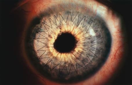 INDICATIONS Pain. When intractable pain persists despite medical therapeutic modalities, penetrating keratoplasty should be considered. If the patient is severely disabled, or if the eye has little visual rehabilitation potential, a conjunctival flap, anterior stromal puncture, or cautery of Bowman's layer may provide relief of pain. Penetrating keratoplasty may actually be an easier technical procedure in some instances compared with a conjunctival flap. In addition, the visual rehabilitation potential of keratoplasty creates an advantage when considering the other two aforementioned procedures. Visual Acuity. Enormous variability exists among surgeons regarding penetrating keratoplasty recommendations based on visual acuity decline. A variety of factors should be considered in concert with the amount of visual deterioration before deciding on a surgical treatment modality. Factors such as patient lifestyle, patient expectations, and surgical ability influence the decision to operate. Certainly, penetrating keratoplasty is warranted more for a patient with two decompensated corneas than for a patient with only one abnormal eye. A younger patient with specific job or lifestyle demands might expect better postoperative visual acuity when compared with a sedentary, elderly patient whose activities of daily living are achieved even with reduced vision. Regardless, if one eye is blind or absent, penetrating keratoplasty on the remaining eye should be postponed as long as patient comfort and function allow. Degree of Edema. Complete, diffuse corneal edema decreases the chance of successful penetrating keratoplasty because of tectonic changes in the structure of the eye. Edematous stroma is more difficult to suture and more likely to induce vascularization than in healthy corneal tissue. Successful surgery can still be performed if indicated, and a patient with severe corneal edema has a reasonable chance for useful vision in the absence of macular pathology or glaucoma. CONTRAINDICATIONS. Relatively few contraindications exist for penetrating keratoplasty in patients with corneal edema. Keratoconjunctivitis sicca, especially when associated with severe ocular surface diseases, such as ocular pemphigoid or Stevens-Johnson syndrome, prevents proper epithelial wound healing following penetrating keratoplasty; hence, the prognosis is guarded. Eyes with hypotony, as in early phthisis, will most likely result in loss of the eye with keratoplasty because of inability of aqueous production to meet the metabolic demands of the donor cornea. In addition, severe macular pathology that precludes adequate visual rehabilitation may be a relative contraindication to penetrating keratoplasty unless globe integrity is an issue. As long as corneal edema can be controlled enough to make the patient with macular disease comfortable, penetrating keratoplasty can be deferred. If corneal edema is associated with severe ocular surface disorders, the ocular surface disease should be addressed prior to proceeding with penetrating keratoplasty. Particular caution should be observed in performing penetrating keratoplasty in patients with neurotrophic corneas. A lateral tarsorrhaphy and/or punctal occlusion should be performed at the time of keratoplasty in patients with surface disease or neurotropic corneas. Posterior Keratoplasty Although penetrating keratoplasty is the surgical procedure of choice for replacement of diseased endothelium in cases of corneal endothelial failure, additional techniques for replacement of the posterior cornea only have been performed in hopes of alleviating some of the shortcomings from full-thickness keratoplasty procedures. Although Barraquer124 was the first to describe posterior corneal tissue transplantation under an anterior flap, Jones and Culbertson125 described endothelial lamellar keratoplasty in 1998. Azar and colleagues126 described variations of this technique in 2000 and termed the procedure microkeratome-assisted posterior. Both techniques use a microkeratome to create an anterior corneal flap and expose the posterior stromal bed. The posterior stromal bed is then trephined and excised, and the donor tissue is sutured in place. The anterior flap is secured over the transplanted tissue.125 A second technique of posterior keratoplasty pioneered by Melles and associates127–129 was further modified by Terry and Ousley130–131 in the United States and named deep lamellar endothelial keratoplasty. This procedure evades some inherent complications of full-thickness penetrating keratoplasty, such as high or irregular astigmatism, insufficient wound healing, and suture-related graft complications, by avoiding surface corneal incisions or sutures. A scleral wound is created, and a deep lamellar corneal pocket approximately three-fourths of the depth of the cornea is fashioned. The posterior stroma is trephined and excised from inside the corneal pocket with special instruments. The posterior aspect of the donor tissue is then secured in place with air tamponade in the anterior chamber, after which the scleral wound is sutured closed.130 Although these techniques are still in investigational stages, recent reports have shown success in patients following posterior keratoplasty.129,131 Both techniques allow replacement of the posterior stroma and endothelium without disrupting Bowman's layer and the anterior stroma, so postoperative corneal astigmatism is much less of a problem compared with full-thickness grafts. However, as with all lamellar procedures, interface haze may interfere with vision and best-corrected acuity may not be as good with these lamellar procedures as with penetrating grafts. Additional studies will help compare relative benefits of penetrating keratoplasty and posterior keratoplasty for treatment of irreversible corneal edema from endothelial disorders. |