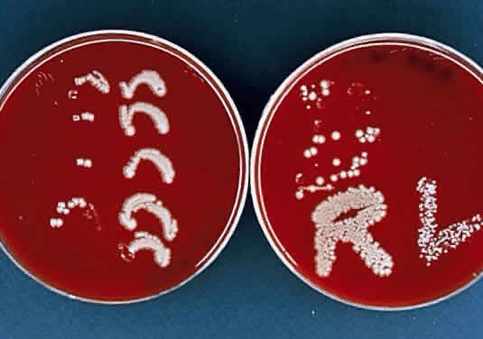 STAPHYLOCOCCI Staphylococci are among the most common bacteria encountered in ocular infections. Staphylococcus aureus (coagulase-positive staphylococcus) is generally considered to be a pathogenic organism. The coagulase-negative staphylococci include Staphylococcus epidermidis, which is thought to be part of the normal body flora. There are at least 14 other species of coagulase-negative staphylococci that are rarely associated with infectious keratitis.31 During microscopic examination, staphylococci almost always appear Gram-positive, are spherical with a mean diameter of approximately 1 mm, and are seen extracellularly. Old cultures or scrapings from antibiotic-treated cases may show Gramnegative staining characteristics. Although grape-like clusters are frequently seen in scrapings or smears from nonocular tissues, these are unusual in scrapings from corneal ulcers, in which single cocci or clusters of two to six cocci are observed. Two species, S. epidermidis and S. aureus, cannot be distinguished by Gram stain; however they show distinct characteristics in culture. In general the staphylococci are easily cultured on standard bacteriologic media (see laboratory section) and grow rapidly in incubation at 37°C. They do not have a distinctive odor and grow in the presence or absence of oxygen. Typical colonies are round, flat, smooth, and several millimeters in diameter by 48 hours (Fig. 1). S. aureus colonies show beta hemolysis (clear zones of hemolysis on blood agar) and some degree of pigmentation (light cream to golden yellow). In contrast, S. epidermidis colonies are usually nonhemolytic and rarely exhibit pigmentation.