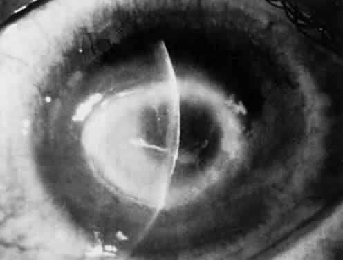 Deep linear intrastromal infiltrates beginning in the paracentral cornea and extending to the limbus in a radial pattern also have been described as highly characteristic for Acanthamoeba keratitis.32 These clinical observations may represent combined infiltration and inflammation of the terminal corneal nerve endings by Acanthamoeba organisms. Possibly, this radial keratoneuritis explains the occurrence of severe ocular pain as well as decreased corneal sensation in these patients. Other findings in Acanthamoeba keratitis may include iritis, hypopyon formation, increased intraocular pressure, cataract formation, and sclerokeratitis.3,31,33 The anterior scleritis is usually adjacent to the area of corneal infiltration and may have a nodular component.31 Acanthamoeba keratitis is often mistakenly diagnosed as herpes simplex or fungal or bacterial keratitis. Thus, one must maintain a high index of suspicion for Acanthamoeba when caring for patients diagnosed with these other types of keratitis, especially when there is a prolonged clinical course or poor response to treatment. Although the numerous signs and symptoms associated with the diagnosis of Acanthamoeba keratitis by themselves are not specific, in combination they present a rather characteristic clinical picture. Careful attention to the patient's history, as well as recognition of the chronic and varied anterior segment findings make the diagnosis less elusive. With employment of recommended laboratory techniques, a definitive diagnosis can be obtained and appropriate therapy instituted. |