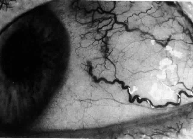 of the vessels from the sclera in blacks as a normal phenomenon, and