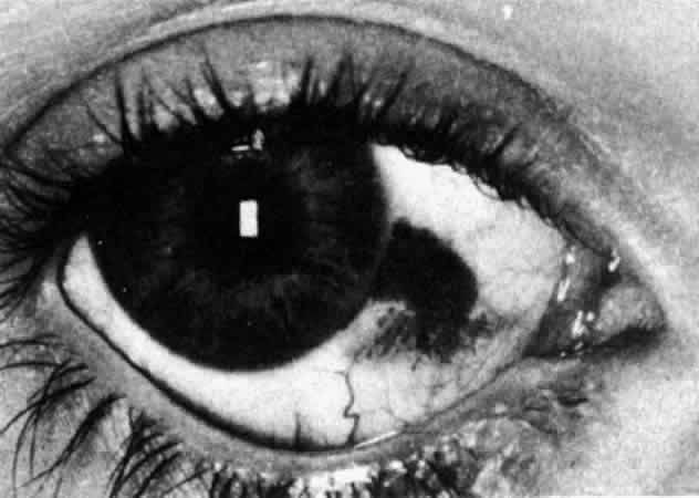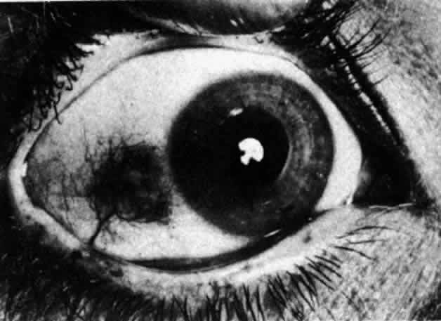 pigment cells of the basal epithelium of the conjunctiva (Fig. 76). Very rarely, pigmentation of sclera in white races may indicate an intraocular
