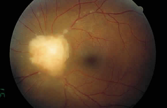 CILIARY BODY ABNORMALITIES The pars plana of the ciliary body may be seen by indirect ophthalmoscopy with scleral depression. This is particularly important in cases of suspected pars planitis, where one may see “snowbanking” of inflammatory cells and neovascular membranes. The pars plicata of the ciliary body is more difficult to see, and the ultrasound biomicroscope may be used to provide information about its position and morphology.33–35 It may also be used to provide information about angle structures, ciliary body, and peripheral retina, particularly in patients without clear media. Cyclitic membranes that form between the ciliary processes may lead to ciliary body detachment, hypotony, and phthisis bulbi. This process most frequently occurs in long-standing cases of iridocyclitis. Extension of the cyclitic membranes posteriorly may lead to tractional retinal detachment. These membranes may be difficult to detect. Sometimes they are seen in the retrolental space at the slit lamp but in other cases they are not seen clinically. Their presence may often be inferred because of profound hypotony that is unresponsive to anti-inflammatory therapy, and ultrasound biomicroscopy may be confirmatory. FUNDUS ABNORMALITIES Every patient with uveitis requires a complete fundus examination. Posterior foci inflammation or infection may be missed if one examines the anterior chamber only. For example, patients with cytomegalovirus retinitis or toxoplasmic retinochoroiditis may present with anterior chamber inflammation. If a complete dilated fundus examination is not performed, the patient may be misdiagnosed as having noninfectious iritis or iridocyclitis. Indirect ophthalmoscopy is necessary to see the peripheral retina. The macula should also be examined with slit-lamp biomicroscopy in all patients with uveitis because cystoid macular edema is a frequent cause of decreased vision in patients with anterior, intermediate, and posterior inflammation. It should be suspected in cases where visual acuity is decreased, even when the macula does not appear grossly edematous. Fluorescein angiography is a helpful adjunct to clinical examination, especially in cases with a compromised view of the fovea. Other causes of decreased visual acuity in patients with uveitis include epiretinal membranes and subretinal neovascularization. It is important not to overlook these findings because laser or surgical therapy may improve prognosis. Examination of the posterior segment of the eye must also include an examination of the optic nerve head. Disc edema or hyperemia is frequent in uveitis patients, often preceding the development of macular edema. Neovascularization of the disc is another abnormality that may develop in patients with severe uveitis.36 The optic nerve head may also be a site of granuloma formation (Fig. 12).