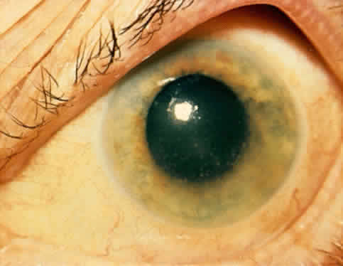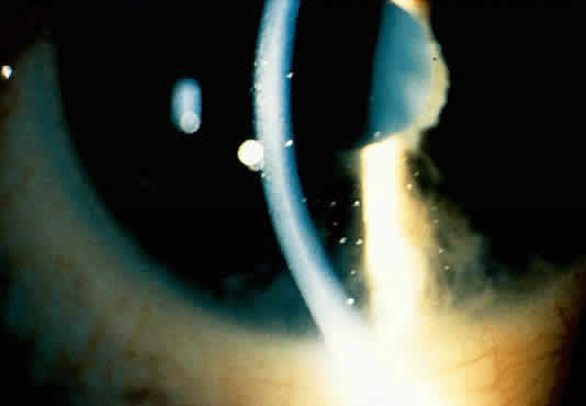 Fig. 12. Iridocyclitis with poorly defined keratic precipitates and chronic course due to herpes simplex virus.