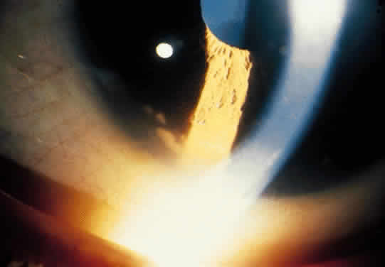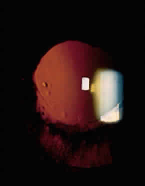 Fig. 7. Maturing cataract changes in heterochromic cyclitis.