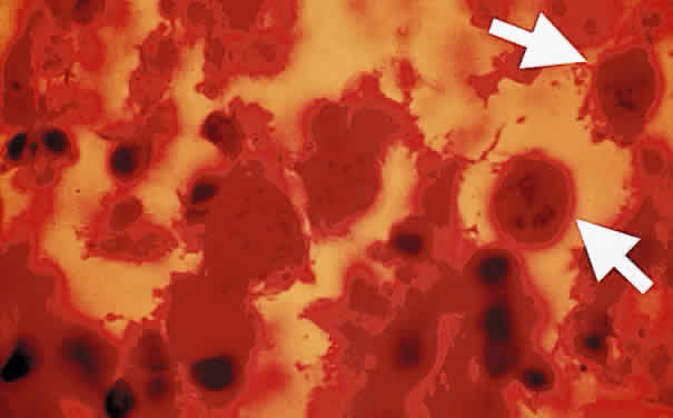 | The definitive diagnosis of toxoplasmosis includes the isolation of T. gondii in ocular tissues. Ocular specimens may be inoculated into the peritoneal cavities of mice, and subsequent demonstration of T. gondii in the mice peritoneal exudates and the brain is indicative of the disease. The presence of toxoplasmosis in tissue specimens of patients with toxoplasmic retinochoroiditis may suggest the diagnosis but does not prove the acute infection unless the organism has been isolated. |