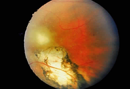 | Severe inflammatory changes within the globe secondary to toxoplasmosis