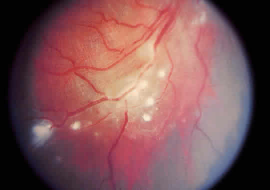 BACTERIAL ENDOPHTHALMITIS Retinal periphlebitis has been described in early staphylococcal endophthalmitis and has been reproduced experimentally by intravitreal staphylococcal injections in monkeys.157 Retinal periphlebitis was found in 26 of 28 human autopsy eyes with bacterial endophthalmitis.158 Cotton-wool spots, retinal hemorrhages, and Roth spots (white-centered hemorrhages) were observed in septic patients without intraocular inflammation and may represent infectious embolization to the retinal circulation.159,160 TUBERCULOUS PERIPHLEBITIS Periphlebitis is considered the most common retinal manifestation of tuberculosis.161 It is usually associated with peripheral capillary closure that may lead to ischemia and new vessel formation.162 The diagnosis of tuberculosis-related retinal vasculitis is presumptive and can be controversial. It is usually based on the clinical picture with a positive tuberculin skin test.163 The exclusion of other possible causes and a favorable response to antituberculosis medications support the diagnosis.163 The pathogenesis of tuberculosis-related retinal vasculitis is still unclear, but two mechanisms have been suggested.162,164 One mechanism involves an infectious process, wherein the tuberculous bacilli are directly responsible for the observed lesions. This mechanism seems probable when tubercles are present in the choroid. The alternative hypothesis suggests that hypersensitivity mechanisms are responsible for retinal vasculitis.162,164 The relation of tuberculous periphlebitis and Eales' disease must be considered. SYPHILITIC UVEITIS Periphlebitis is mostly found in congenital syphilis and was the only vascular lesion in a case of acquired lues, mimicking a branch vein occlusion.165 Secondary syphilis can be accompanied by severe posterior uveitis. Retinal vasculitis usually accompanies syphilitic chorioretinitis.166,167 The vitreous may show a dense haze, and gray exudates may be seen in the posterior pole, along retinal vessels, and around the optic nerve head. Syphilis can also present as a necrotizing retinitis with marked sheathing of arteries and veins.168 Although uncommon, primary syphilitic vasculitis can occur, affecting both arteries and veins.169 It is associated with retinal and preretinal hemorrhages and neovascularization. RARE VIRAL INFECTIONS Rare viral infections associated with retinal vasculitis include influenza, infectious mononucleosis, and Rift Valley fever, which is an arthropod-borne viral infection of sheep and cattle that is spread by an insect bite. Macular retinitis and vascular occlusions secondary to proliferation of viral particles in vascular endothelial cells have been reported.170 TOXOPLASMOSIS Ocular toxoplasmosis typically causes a necrotizing retinitis with a reactive choroiditis. There may also be periphlebitis with or without venous obstruction, arteritis and arteriolar occlusions, retinal hemorrhages, and Roth spots.171–173 Yellow refractile deposits (segmental periarteritis) along the arteries in the posterior pole have been described.30,31,174 These plaques are numerous during the active stage of chorioretinitis and resolve as the inflammation subsides. The plaques do not obstruct blood flow and are on the outside of vessels. Diffuse perivenous sheathing has been observed in the vicinity of, as well as distant from, the chorioretinitis. UNCOMMON PARASITIC INFECTIONS Rickettsia, the causative agent of Rocky Mountain spotted fever, are obligate intracellular parasites with a preference for vascular endothelium.175 They primarily affect small arterioles, causing vessel wall necrosis, thrombosis, and hemorrhage. Ophthalmoscopic features of rickettsial infection include artery and vein occlusions with a clinical picture similar to Eales' disease. Babesiosis is a rare tickborne intraerythrocytic parasitic disease similar to malaria. It is characterized by fever, lymphadenopathy, arthralgias, and hemolytic anemia. Splenectomized patients, elderly persons, and immunocompromised and HIV-infected patients are especially predisposed to infection with babesiosis.176 A case of babesiosis mimicking lupus retinopathy has been reported.177 It is believed that the cotton-wool spots observed were caused by immune complex-mediated retinal arteriolitis. Hemorrhagic vasculitis with perivascular eosinophilic and plasma cell infiltrates has been observed in experimental onchocerciasis.178 Onchocerciasis-related eye disease is an important cause of blindness, especially in the forest-savanna mosaic areas of Nigeria.179 The onchocercarial-induced lesions that are responsible for visual impairment and blindness are chorioretinitis and optic nerve disease.179 Giardia lamblia, an intestinal parasite, has also been associated with iridocyclitis, vitritis, and patchy retinal arteritis.180 ACQUIRED IMMUNE DEFICIENCY SYNDROME Retinal microvasculopathy, the most common ocular manifestation of HIV infection, occurs in up to 70% of patients.181 The most common clinical presentation of retinal microvasculopathy is cotton-wool spots, reported in 26% to 53% of cases.182 Cotton-wool spots may be associated with other microvascular abnormalities, such as superficial or deep retinal hemorrhages, white-centered retinal hemorrhages (Roth spots), microaneurysms, and intraretinal microvascular abnormalities. Retinal microvasculopathy occurs with increasing frequency as the CD4 T-cell count decreases. The cause and pathogenesis of the microvasculopathy are uncertain, but it is likely that either direct infection of vascular endothelial cells by HIV, immune complex deposition in retinal arterioles, or both, are involved.182 Endothelin-1, a cytokine with a potent vasoconstriction activity, has also been considered to play a role in its pathogenesis.183 Coinfection with hepatitis C virus has also been proposed as a precipitating factor for the development of HIV microangiopathy.184 Periphlebitis has been reported in a few patients with HIV infection