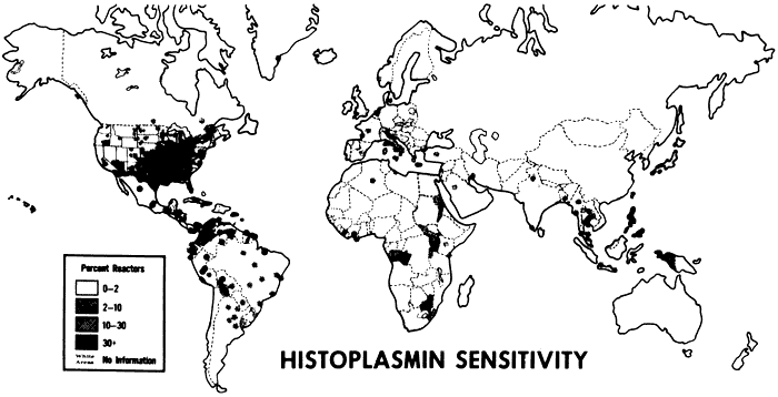the histoplasmin test by adulthood. Areas in South America, Africa, and