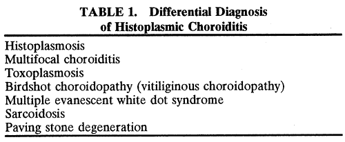 to form (Table 1). Multifocal choroiditis and toxoplasmosis are frequently mistaken for