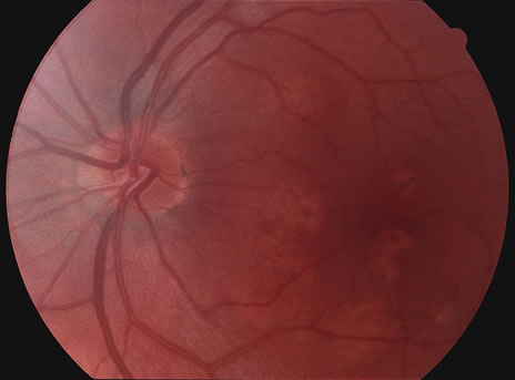 a systemic autoimmune disease. Most patients develop acute visual loss followed by stabilization after 6 months. Only a rare patient has stepwise progression of visual loss. Patients note the visual loss as scotomas that involve one or more parts of the visual field with the most common finding being an enlarged blind spot. The vast majority of patients (88%) notice photopsias that may be colored or noncolored. Most patients have visual acuity of 20/40 or better on initial evaluation, and the majority retain 20/40 or better at the time of the final evaluation. Vitreous cells are present in approximately one half of the cases and approximately 10% of eyes were noted to have retinal vascular sheathing. The eyes with vitreous cells may develop focal areas of mottling of the retinal pigment epithelium that is similar to the mottling seen in mild cases of retinitis pigmentosa although many eyes appear to have a normal fundus. Rarely, patients may develop chorioretinal scars that appear similar to those seen in multifocal choroiditis. Fluorescein angiography in the acute phase is usually unremarkable. In the chronic phase there may be mottling fluorescence at the level of the retinal pigment epithelium. An abnormal full-field electroretinogram was noted in more than 60% of the patients. The multifocal electroretinogram may also be abnormal.24 The differential diagnosis in this group of patients includes the white dot syndrome diseases, diffuse unilateral subacute neuroretinitis, retinitis pigmentosa, carcinoma associated retinopathy, and syphilis. |