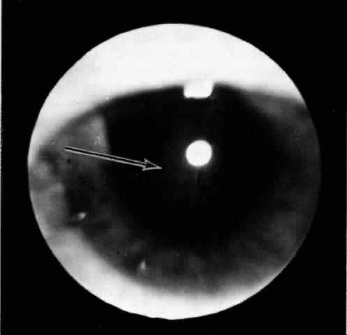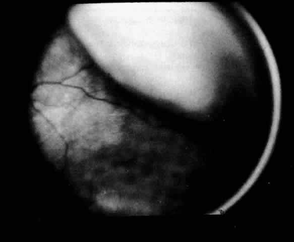 a retinal detachment to a hasty observer; however, darkness of the uvea, lack