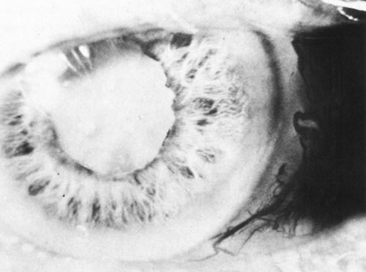 Pseudoretinoblastoma The diagnosis and classification of pseudoretinoblastoma lesions are evolving. Genetic tests will more precisely differentiate among several entities grouped under the rubrics of either retinal dysplasia or atypical persistent hyperplastic primary vitreous. In children with lesions that produce leukocoria, such molecular biologic testing for several diseases is often useful (see http://www.genetests.org). A recent example in which such tests altered our clinical impression is the case of a young female patient referred to us to rule out retinoblastoma. Our findings on clinical examination were consistent with an atypical retinal dysplasia. There was no family history, but genetic testing demonstrated that she was a mosaic for Norrie's disease.56 It is likely that such types of studies will help to clarify the nature of many of the pseudoretinoblastomas that have been classified clinically as variants of either persistent hyperplastic primary vitreous or retinal dysplasia. LEUKEMIA Ocular involvement is a common presentation of acute myelomonocytic leukemia in children from the Mediterranean area.57 These children often present with simultaneous ocular and orbital tumor.58,59 In a few cases, we have established the correct diagnosis with an anterior chamber paracentesis. Most American children managed for leukemia-associated ocular problems, however, have the acute form of lymphocytic disease, and ocular problems usually develop as a sign of systemic or CNS relapse. In rare cases, an anterior chamber collection of malignant cells (similar in appearance to Fig. 21) or tumor infiltrating the optic nerve head can be the presenting sign of this disease.58,59 Rarely, where the possibility of intraocular recurrence of acute lymphocytic leukemia is not recognized and topical corticosteroids are given for presumed anterior uveitis, the anterior chamber clears and the patient presents with a ciliary body mass (Fig. 27). RARE PEDIATRIC INTRAOCULAR NEOPLASMS Less common neoplasms in children can also simulate benign forms of inflammation. Medulloepithelioma is a rare tumor that can affect different intraocular structures but most commonly involves the iris-ciliary body. This tumor has a typically velvety surface60 and may present with intraocular inflammatory signs (Fig. 28).