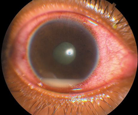 circulating microorganisms colonize the vegetation.10 Streptococcus spp. (viridans), Staphylococcus aureus, coagulase-negative Staphylococci, and Enterococci are the most common pathogens responsible for infective endocarditis. Escherichia coli, salmonella, klebsiella, and fungi also have been found.11 Endocarditis may present with myriad nonspecific symptoms, including malaise, fevers, chills, night sweats, anorexia, and dyspnea.1 On systemic examination, patients may have a heart murmur, splenomegaly, and petechial hemorrhages in their mouth or on their skin. Larger, painless, hemorrhagic macules on the palms and soles are called Janeway lesions, whereas painful nodules on the fingers and toes are called Osler nodes. The laboratory findings include anemia and leukocytosis. The erythrocyte sedimentation rate and C-reactive protein levels may be elevated and urinary abnormalities, such as proteinuria and hematuria, are frequent. At least three sets of sterile cultures should be drawn within 24 hours. Positive blood cultures are present in more than 90% of cases. Cardiac echography is helpful; transthoracic echography has excellent specificity for detecting endocarditis (98%) but variable sensitivity. If clinical suspicion is still high despite a negative transthoracic echocardiogram, transesophageal echocardiography can be performed. It has a higher sensitivity than transthoracic echocardiography, with excellent specificity as well.12,13 Both cardiac and extracardiac complications of endocarditis can occur. Cardiac complications vary from arrhythmia to cardiac failure.14 The extracardiac manifestations usually result from thromboembolic phenomena. Distant embolization causes arterial obstruction, with resultant ischemia and tissue infarction, localized abscesses, and mycotic aneurysm formation. Central nervous system manifestations of infectious endocarditis include stroke, transient ischemic attack, brain abscess, meningitis, or mycotic aneurysm.15–20 Conjunctival petechial hemorrhages, iris abcesses,21 superficial or deep retinal hemorrhages,22 focal abscesses, vasculitis, choroidal neovascular membrane formation, and endogenous endophthalmitis23,24 are the major complications of infective endocarditis. The classic ocular sign of infective endocarditis is a Roth spot (a white-centered hemorrhage; see Fig. 1). The white center is believed to be either a focal microabscess caused by a septic embolus or a fibrin and platelet clot, as seen in other disorders, such as leukemia (Fig. 2). 25 Retinal arteriole occlusion may produce cotton wool spots, and branch or central retinal artery obstruction.26,27 The inflammatory emboli also can cause a choroiditis that can lead to choroidal neovascular membrane formation.28 Endogenous endophthalmitis is the most severe ocular complication of infective endocarditis. The treatment of endogenous endophthalmitis usually involves identification of the underlying organism and aggressive systemic treatment with the appropriate antibiotics. If there is clinical evidence of virulent endophthalmitis associated with significant vitritis or hypopyon (Fig. 3), the physician also should consider intravitreal antibiotics, possibly in conjunction with pars plana vitrectomy.29 Several small, retrospective, nonrandomized reports suggest that systemic treatment with vitrectomy and intravitreal antibiotics may have better visual results than systemic treatment alone.30,31 Conversely, endogenous endophthalmitis may be the initial presenting sign of infectious endocarditis in a small subset of patients. A full systemic evaluation, including cardiac ultrasonography, should be performed in all patients with endogenous endophthalmitis.