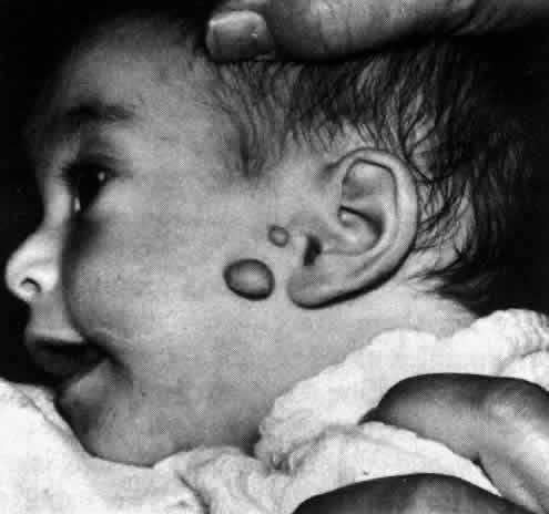 FACIAL DEFORMITY SYNDROMES Mandibulofacial Dysostosis Mandibulofacial dysostosis (Treacher Collins syndrome) is a syndrome of malformation of structures formed from the first branchial arch, including the zygoma, the ear, the mandible, and the eye (11–13 ). The anomalies may be unilateral or bilateral, and the syndrome may be complete or incomplete. Inheritance is dominant, but expressivity is variable: some patients show the entire syndrome and others only one or two characteristics. Not all patients have a positive family history; there may be more sporadic cases than inherited ones. Chromosomal studies have found no abnormalities. Nonocular manifestations include hypoplasia of the malar and zygomatic areas. The zygomatic process is occasionally absent and its area depressed; blind fistulas and tongue-shaped extensions of the hairline are also seen in the involved region. The width of the face is reduced. The external ears may be displaced, small, or virtually absent. The external ear canal may be obliterated. The components of the middle ear may be hypoplastic or absent. Mandibular underdevelopment with an associated receding chin is characteristic. Macrostomia is frequent. The palate is high, arched, and often cleft. Malocclusion and malposition of the teeth are the rule. Associated malformations are Klippel-Feil syndrome, spina bifida, aortic coarctation, anomalies of the extremities, and mental retardation. The most common ocular findings are colobomas in the outer third of the lower eyelids. Other characteristic features include an antimongoloid slant of the palpebral fissures (with the outer canthi lower than the inner canthi) and irregularity or partial or total absence of the lower lid lashes. Microphthalmia, iris colobomas, and absence of lower lacrimal puncta or meibomian glands have occasionally been findings. Oculovertebral Dysplasia Oculovertebral dysplasia (Weyers-Thier syndrome) is a unilateral variant of mandibulofacial dysostosis; it is rarer than the more typical forms of the Treacher Collins syndrome (14–16). It is characterized by three classes of deformities: those involving the face, those involving the spine and ribs, and those affecting the eye. The facial malformation, usually unilateral, results mostly from maxillary dysplasia. Thus, there is facial asymmetry, malformation of the superior alveoli, and dental malocclusion. On the affected side, other findings are a low-set and rudimentary external ear, an area of alopecia behind the affected ear, enlargement of the buccal commissure with unilateral macrostomia, and absence of the mandibular ramus. There may be faulty segmentation of the spine and rib anomalies. The hand on the involved side may be deformed. Ocular findings are unilateral, and they include anophthalmos, cryptophthalmos, and microphthalmos. Weyers and Thier subdivided this syndrome into two types, i.e., a typical unilateral mandibulofacial dysostosis and an oculoauricular form. Pierre Robin Syndrome The diagnostic triad in this syndrome consists of micrognathia, glossoptosis, and cleft palate (17). In the newborn with this syndrome, breathing is compromised from pressure of the base of the tongue on the epiglottis. During the second month of embryonal life, closure of the palate normally coincides with rapid mandibular growth. If mandibular growth does not occur (as is the case in the Pierre Robin syndrome), the tongue remains between the palatine processes, and a cleft palate persists. Sixty to eighty percent of infants with micrognathia and glossoptosis have cleft palates. If treatment is not prompt and adequate during earliest infancy, death may occur from asphyxia, vasovagal reflex, inhalation pneumonia, or inanition. Treatment consists of placing the infant in a prone position, feeding through a nasogastric tube, suturing the tip of the tongue to the lower lip, and performing tracheotomy when required. The prognosis is good if early childhood can be survived. Micrognathia becomes less prominent as the child grows older: by age 5 or 6 these children appear fairly normal. Most cases are sporadic, but, occasionally, familial proclivity has been described. Associated malformations are aural anomalies, congenital heart disease, and malformation of the extremities. Intelligence is usually normal. Ocular involvement occurs in approximately half of the patients (18, 19). These include, in order of decreasing frequency, esotropia, congenital glaucoma, retinal detachment, and severe myopia. Also noted have been purulent conjunctivitis in the newborn, posterior subcapsular cataracts, and irregular pupils. Early eye examination should be directed to the detection of glaucoma and retinodialyses with detachments. Oculoauriculovertebral Dysplasia Oculoauriculovertebral dysplasia (Goldenhar's syndrome, oculoauricular dysplasia) was first reported by Goldenhar in 1952 (20). It has many of the features of mandibulofacial dysostosis as well as epibulbar dermoids and vertebral anomalies. Together with the Treacher Collins syndrome (mandibulofacial dysostosis) and the Pierre Robin syndrome (micrognathia, glossoptosis, and cleft palate), it is probably a variant of a first branchial arch syndrome. Goldenhar's syndrome exhibits auricular, vertebral, and facial defects (21, 22). There may be microtia (small ears) with or without occlusion of the external ear canal. Preauricular fistulas and appendages are the rule; they occur in 70% of patients (Fig 29-1 ). Block-shaped vertebrae and hemivertebra are especially common in the cervical spine, and they are sometimes combined with occipitalization of the atlas. There may be irregularities in the thoracic, lumbar, and sacral regions of the spine. The skull and face may be underdeveloped as a result of mandibular and malar hypoplasia. High or cleft palate, cleft lip or tongue, micrognathia, and dental anomalies are also seen. No abnormalities have been found in chromosomal studies. There is no familial incidence in 9