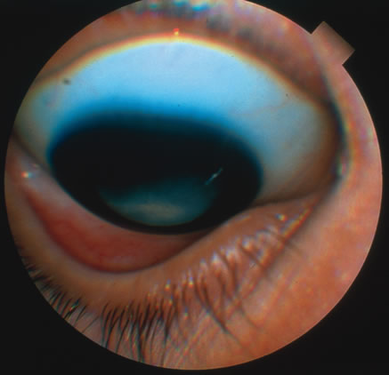 Clinical diagnosis of HSV infection can be made when the characteristic vesicular lesions are present. The diagnosis can be confirmed by isolation of the virus in tissue culture when necessary. Scraping the base of the lesions and Wright's, Giemsa, or Papanicolaou's stains will demonstrate the characteristic giant cells or intranuclear inclusions of herpesvirus infection. Most infections with HSV are mild or asymptomatic and require no specific treatment; however, antiviral therapy can be life saving in cases of neonatal herpes, disseminated infections, and herpes encephalitis. Famciclovir and valacyclovir effective in reducing the pain, healing time, and duration of viral shedding in patients with first episode genital herpes and significantly shortens the clinical and virologic course in recurrent episodes. Immunocompromised patients with chronic progressive oral herpes have also demonstrated improved healing times and decreased viral shedding when treated with oral antivirals.4 Intravenous acyclovir is the drug of choice in the treatment of neonatal herpes infections and herpes encephalitis. The corneal scarring caused by recurrent infection with HSV may be visually disabling and may require corneal transplantation. Over the course of the last decade, the Herpetic Eye Disease Study Group (HEDS) examined the short-term and long-term effects of oral acyclovir and topical steroids on epithelial keratitis, stromal keratitis and iritis. Long-term oral acyclovir was shown to reduce the rate of recurrent HSV epithelial keratitis and stromal keratitis, especially in those who have had multiple prior episodes of stromal keratitis.5,6 Topical steroids are beneficial in preventing progression of stromal inflammation and shortening duration of stromal keratitis. Topical steroids should be given in conjunction with topical Viroptic (King Pharmaceuticals, Bristol, TN) in those with stromal disease or disciform keratitis, but steroids should be avoided in those with epithelial disease. The HEDS trial showed a beneficial trend in the treatment of anterior herpetic uveitis with oral acyclovir, but the trend failed to reach statistical significance.7 Nevertheless, practitioners routinely use oral acyclovir in addition to topical steroids plus a cycloplegic for herpetic-related uveitis. Topical steroids are often difficult to discontinue and many patients require low-dose therapy for an indefinite amount of time. VARICELLA AND HERPES ZOSTER Varicella zoster virus (VZV) is an enveloped DNA-containing virus that is morphologically indistinguishable from other members of the herpesvirus family. Varicella is the primary infection. It usually occurs in children and is characterized by a generalized vesicular rash (chickenpox) with insignificant systemic manifestations. Herpes zoster is a reactivation of VZV in adults resulting in a dermatomal eruption of vesicles (shingles) which is usually accompanied by pain in the affected nerve distribution.8 Varicella occurs most commonly in the late winter and early spring. The highest attack rate is in the 2- to 8-year-old group. The infection is highly contagious and is presumably transmitted through direct person-to-person contact or by respiratory droplets. Approximately 96% of susceptible children will develop the disease within 1 month of exposure to the index case. Herpes zoster infections are seen in patients of all ages and occur with equal frequency throughout the year. Almost all infections occur with a history of prior exposure and are believed to be the result of reactivation of latent virus. The incidence of herpes zoster increases with age and is greater in immunocompromised persons. Varicella usually begins 2 weeks after exposure to a preexisting case. There may be a short prodromal period before the rash develops marked by fever, headache, malaise, and lethargy. The exanthem usually starts on the scalp and the trunk and first appears as erythematous macules that progress to papules and then vesiculate. The lesions remain infectious until they crust over, which occurs in approximately 1 week. Successive crops of new lesions appear so that all stages and sizes of lesions may be present at the same time. Mucosal surfaces in the mouth and conjunctiva may be involved as well. The active course of an uncomplicated case is usually over in 7 to 10 days after which the virus remains in a latent state within the dorsal root ganglion of the sensory nerves. In the majority of cases of herpes zoster, pain and paresthesias precede the skin eruption by several days. The skin lesions morphologically resemble those of varicella; however, they tend to be larger and more bullous. The lesions conform to dermatomal distributions and do not cross the midline. The thoracic nerves are most frequently involved followed by the trigeminal and cervical nerves. Herpes zoster occurs more commonly in patients with impaired immunity such as those with neoplastic disease, particularly lymphoproliferative disease, or human immunodeficiency virus (HIV).9 In uncomplicated herpes zoster the majority of patients younger than 60 will have complete resolution of their pain and skin lesions within 4 weeks. The persistence of pain beyond this point (postherpetic neuraglia) is more common in the elderly population. Most ophthalmic involvement by varicella is mild.10 Pocks on the eyelids and a nonspecific papillary conjunctivitis with a watery discharge are common findings. Foci of inflammatory cells may appear on the bulbar conjunctiva, limbus, or peripheral cornea either during the acute illness or weeks to months afterward. These pock-like lesions often ulcerate and are associated with conjunctival hemorrhage and a mucopurulent discharge containing primarily neutrophils. When on the cornea, they may leave faint superficial scars with neovascularization. Occasionally, varicella can cause a punctate, dendritic, geographic, or disciform keratitis associated with a mild to moderate iridocyclitis.